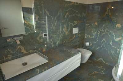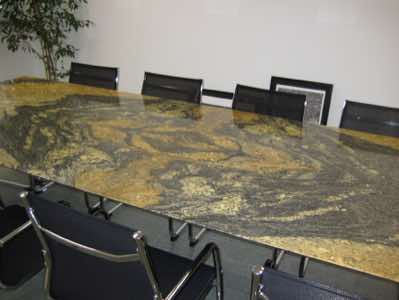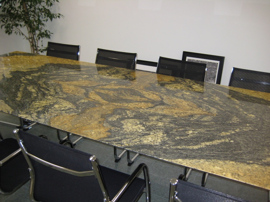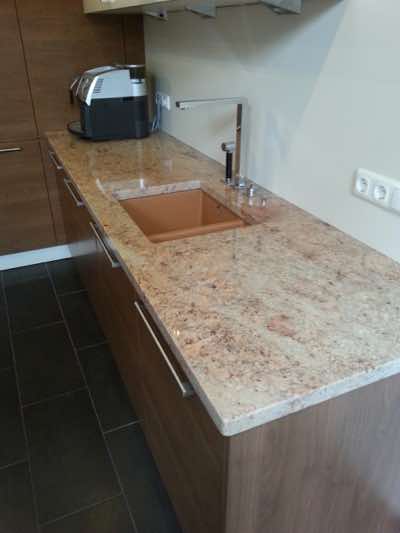 In unserer Ausstellung halten wir für Sie Naturstein aus aller Welt bereit. Auch im Bereich der Quarzkompositgesteine haben wir immer eine sehr große Auswahl an Mustern verfügbar. Quarzkomposit ist das ideale Material für Küchenarbeitsplatten und viele andere Anwendungen im Innenbereich. Das maschinell hergestellte Produkt besteht bis zu 93 % aus Quarz, das mit Harz gebunden wird. Durch diese Mischung entsteht ein sehr widerstandsfähiges Material, das besonders resistent gegen Schmutz, Pilze und Bakterien ist. Wegen dieser hygienischen Eigenschaften findet es sehr oft in Küchen und im Badbereich Verwendung. In unserem Materiallager halten wir immer ca. 200 Rohtafeln für Sie bereit. In unserer eigenen Werkstatt können wir kurzfristig fast jedes gewünschte Stück fertigen.